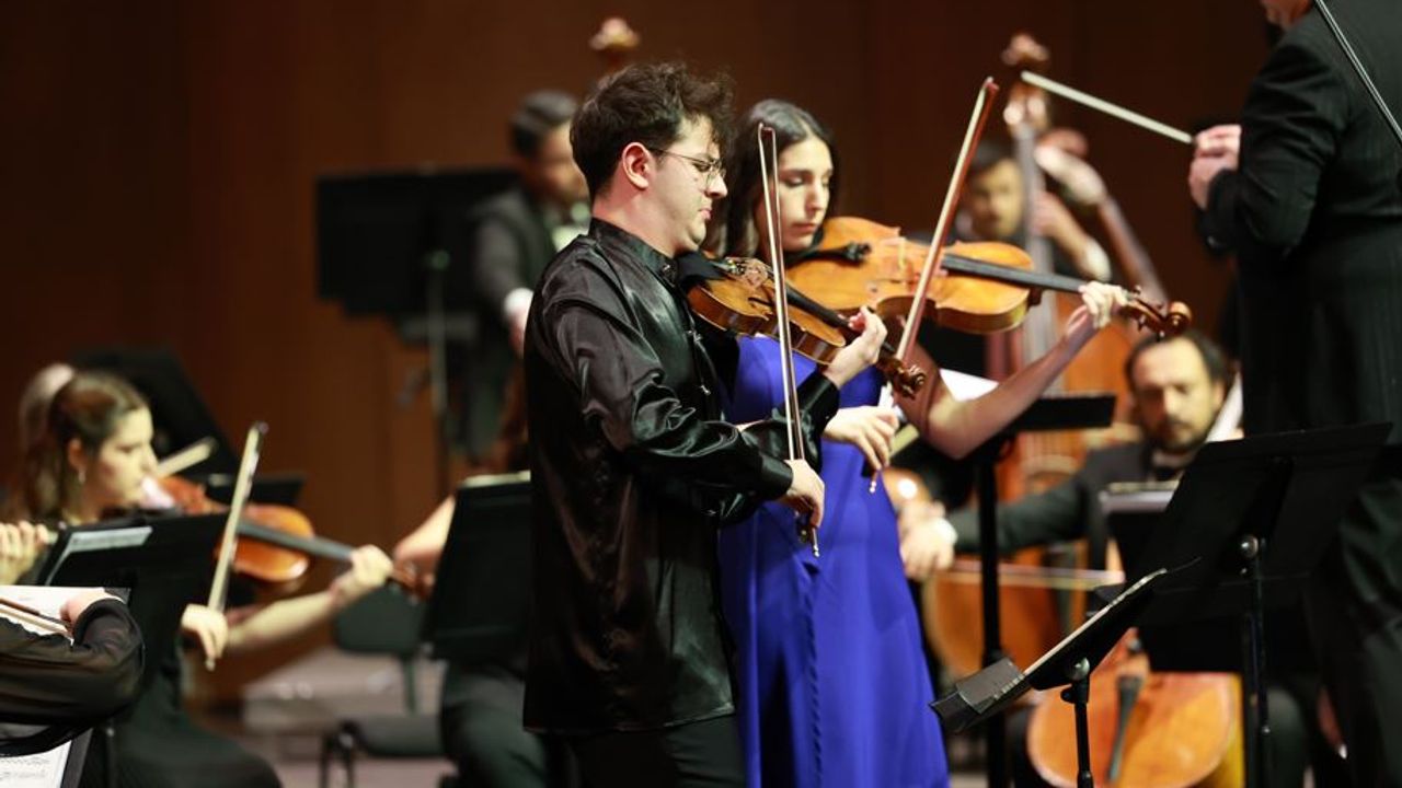 Konserin ilk bölümünde, Mozart’ın 1779 yılında çıktığı Avrupa turnesinin ardından tamamladığı Keman ve Viyola için Senfonik Konçertant seslendirildi. Mozart’ın olgunluk döneminin en parlak örnekleri arasında yer alan yapıt, viyolada Denizsu Polat, kemanda Deniz Yakın’ın yorumlarıyla hayat buldu.